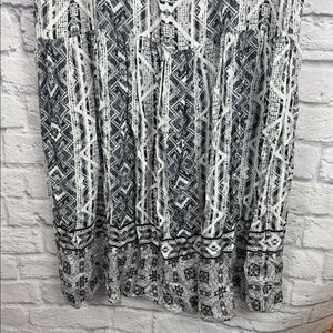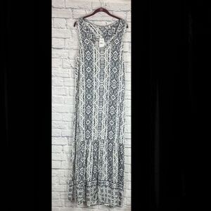 This elegant black and white maxi dress offers a sophisticated look for any occasion. The intricate pattern adds a touch of style, making it a must-have in your wardrobe.