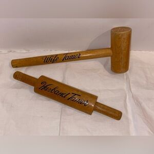 3/55$ Vintage Kitchen decor decorative wife and husband wood “tamer” (humour)