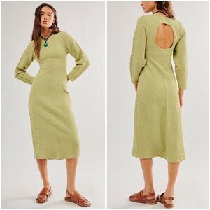Details: Simple yet chic, this timeless midi is featured in a textured fabrication and shapeless silhouette with long-sleeves and bold open-back detail.