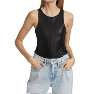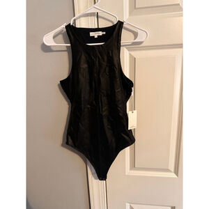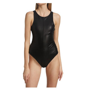 Women's GOOD AMERICAN Black Faux Leather Bodysuit Size 0/XS