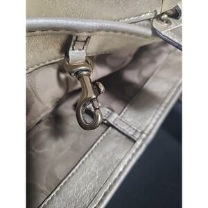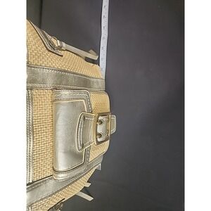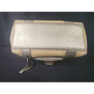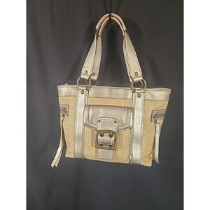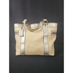Coach Legacy Straw & Leather Satchel Tote Handbag Metallic Gold Cream M05K-113