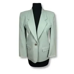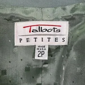 Keywords: Talbots, blazer, jacket, petite, size 2P, career, office, button front, womens blazer, womens jacket, classic, formal, light green, lined blazer, vintage