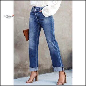 Brand new with tags and in flawless condition — these high-rise distressed boyfriend jeans deliver a casual, trendy look perfect for daily wear, street style, or a night out. The stretchy denim is comfortable and versatile, easily paired with your favorite tops.