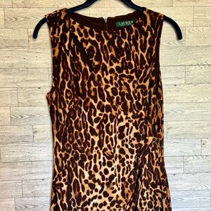 Ralph Lauren LRL Womens Cheetah Sleeveless Faux Wrap Dress Animal Print Size-10