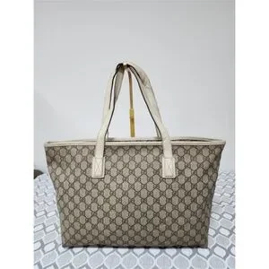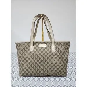 Authentic Gucci GG Supreme Tote Bag Brown/Off-White