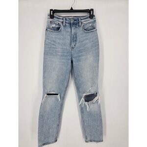 Abercrombie & Fitch 90s Straight Ultra High Rise Distressed Light Wash Denim Jeans 26 2 Regular
