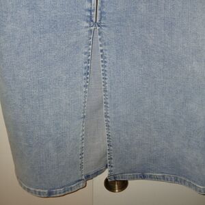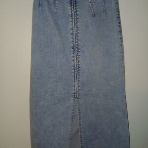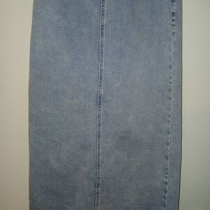 Stradivarius Light Blue Denim Skirt Back Zip Below Knee Tight Fitting Sz: 4