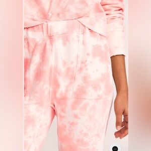 Stylish pink tie-dye joggers. Comfortable fit. Elastic waistband.