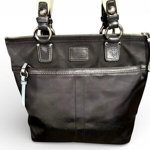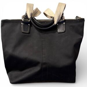 Coach Hampton Black Nylon Leather Trim Tote Bag