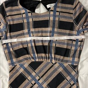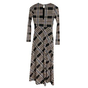 Topshop Plaid Long Sleeve High Waisted Midi Dress Size 4 Vintage-Inspired Print