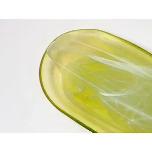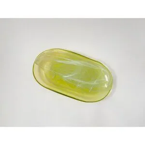 Oval shaped lemon lime swirly vintage oval plate. Can be decorative, can be for serving, can be a catchall! Handmade blown glass. Perfectly oval shaped. Semi-see through with white swirly sections throughout.