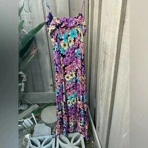 Lulus Dynah women's S Black Floral Print Sleeveless Maxi Dress strap ruffle