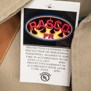 Keywords: Rasco, FR, Flame Resistant, Work Shirt, Industrial, Protective Gear, NFPA 2112, Two Tone, Khaki, Duck, Long Sleeve, Mens Workwear, Safety Apparel, Big and Tall