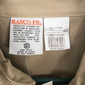 RASCO FR Flame Resistant Work Shirt 4XL Long Khaki Duck Two Tone Workwear