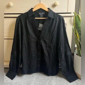 NWT Women’s Tahari Linen Embroidery Blouse L