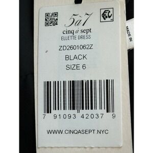 This NWT Cinq A Sept Ellette Midi Dress in women's size 6 is a stylish black sleeveless sheath dress perfect for formal occasions like weddings or parties. With a square neckline and zip closure, this dress features silk fringe and faux leather piping accents at the bust for added flair. Made of a luxurious blend of polyester, silk, spandex, and viscose, it offers stretch for a comfortable fit. The midi length and pencil dress style make it a versatile choice for any season, from winter to summer.