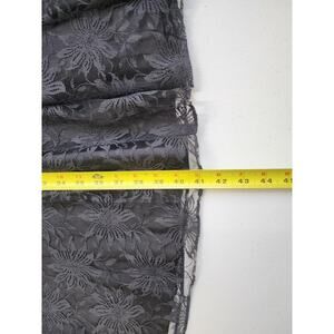 Color and pattern: Solid black ground with tonal floral lace pattern throughout the bodice and full skirt, creating a textured, dressy look.