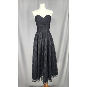 Vintage Jolie Madame Dress 5/6 black floral lace strapless fit & flare midi formal party dress.