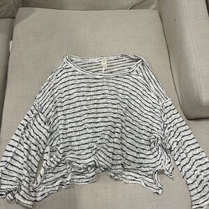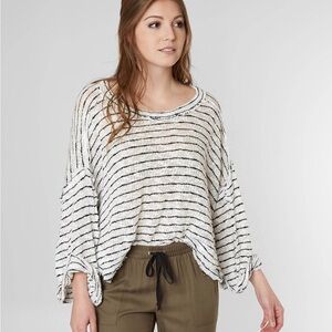 Lightweight sheer cotton knit featured in a stripe pattern with an ultra-relaxed fit and dolman style sleeves.