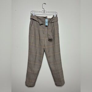 ANN TAYLOR THE BELTED HIGH RISE TAPERED PANTS IN PLAID SIZE 2P