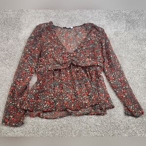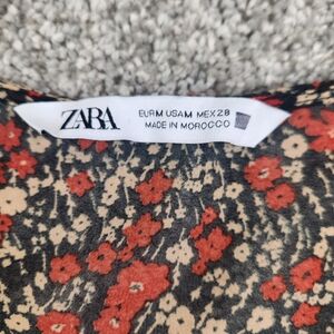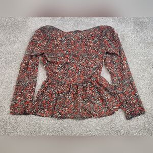 Zara Womens Floral Sheer Peplum Blouse Top Red Size Medium Boho