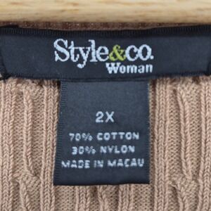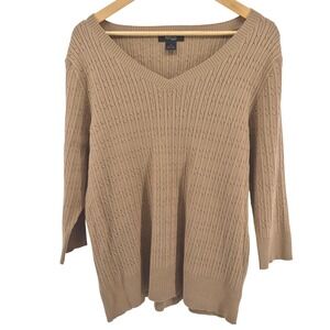 Style & Co Cable Knit V Neck Sweater Tan Plus Camel 2X Preppy Dark Academia