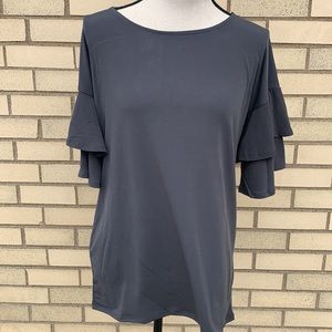 Zenana Ash Gray Double Ruffle Sleeve Drop Shoulders Top NWT