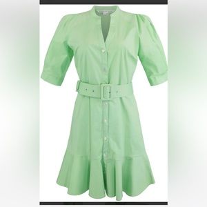 Veronica Beard proves simple means stylish with designs like the Molly shirt dress. Made from a cotton blend, it’s shaped into a figure-flattering silhouette with a removable, waist-cinching belt, flounced hem, and lightly puffed sleeves.