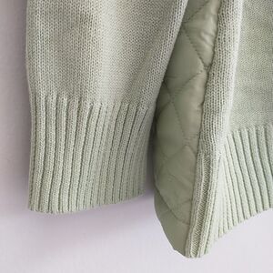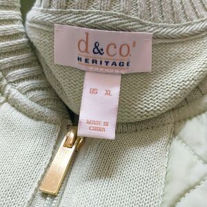 D&Co Heritage Sweater Jacket Womens XL Green Full Zip Quilted Knit Pocket Cotton