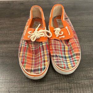 Colorful Preppy & Whimsical Orange Plaid Boat Shoes