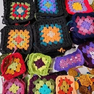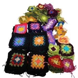 Entire lot of handmade, completed granny Squares and crochet pieces for blanket/Afghan making.