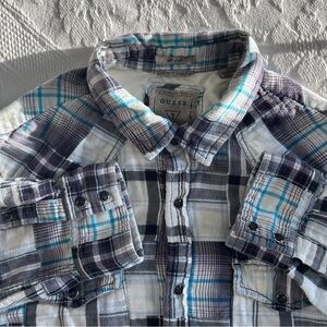 Guess Men's Size Men's Large Plaid Shirt Gauzy Cotton Western Fit Snap Buttons