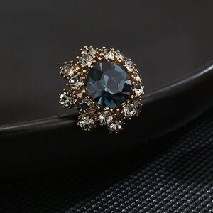 Add a touch of sophistication with this exquisite gold and blue crystal brooch. Perfect for any occasion.