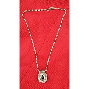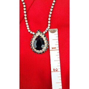 Vintage Rhinestone Clear Black Necklace Costume Teardrop Pendant Costume 17"