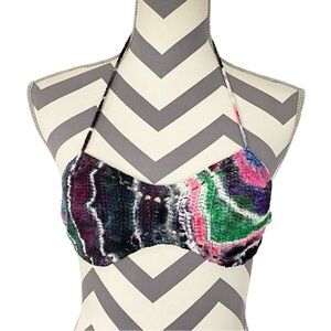 Handmade Crochet Knit Bralette Womens Size Small Adjustable Gray Pink Halter