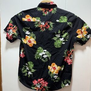 Mens Disney Mickey Mouse Hawaiian Shirt Size Large Black Floral Button Up