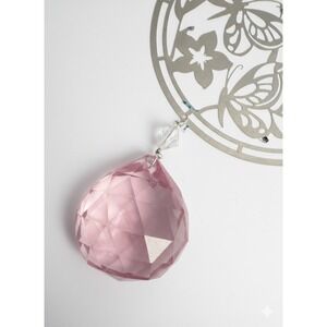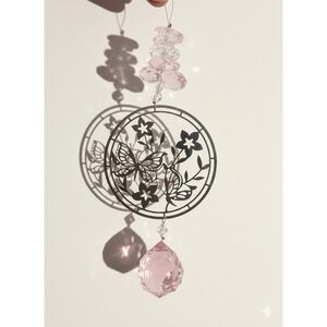 Butterfly Crystal Suncatcher Pink Prisms Hanging Window Decor Whimsical Boho 10"