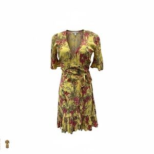 This ZARA Accessories yellow floral wrap dress is a stunning statement piece, featuring a belted waist and flowy silhouette. With its bright tropical-inspired print and flattering wrap style, this dress is perfect for brunch, vacation, or a night out.