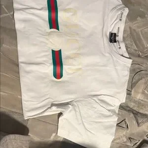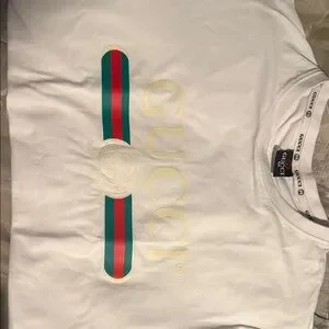 Classic white tee with Gucci branding. Soft and comfortable. Perfect for casual wear.