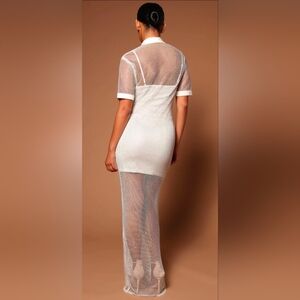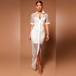 Fashion Nova Women's GINA EMBELLISHED RHINESTONE MESH SPARKLE BUTTON FRONT MAXI DRESS