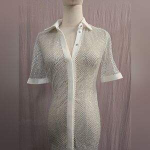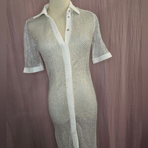 GINA EMBELLISHED RHINESTONE MESH SPARKLE BUTTON FRONT MAXI DRESS- Medium NWOT