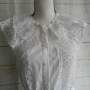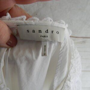 SANDRO COTTON EYELET LACE RUFFLE PEASANT BOHO DRESS SZ 38 US 6