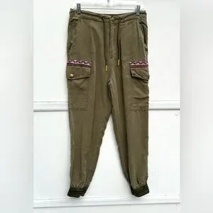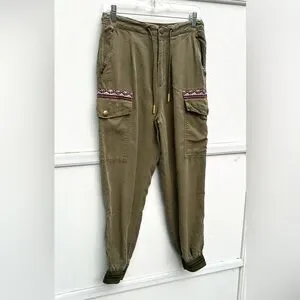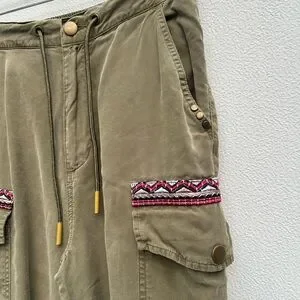 Desigual Cargo Pants Women M Olive Green Embroidered Tribeca Joggers Boho Casual