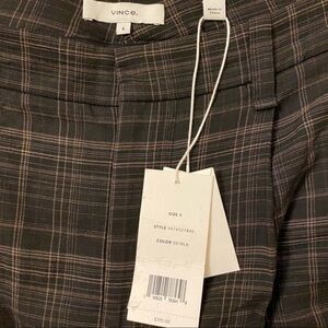 VINCE Classic Plaid Print Trousers in Black Size 8