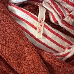 My Story Red Cowl Neck Sweater with Striped Sleeves