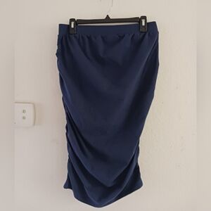 Features soft stretchy knit fabric, side ruching design, over the-belly waistline, knee-length, Color: Navy Blue