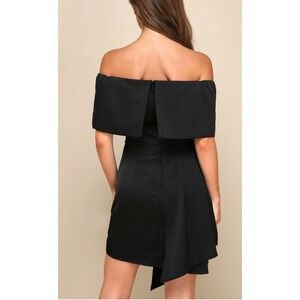 Keywords: Lulus dress, black dress, off shoulder, cocktail attire, evening wear, party dress, special occasion, formal dress, asymmetrical hem, draped silhouette, elegant, chic, mini dress