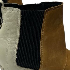 Sorel Joan of Arctic Chelsea Wedge Ankle Boot Camel Brown White Sz 8.5