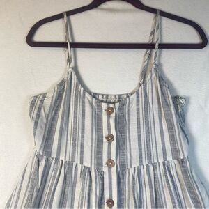 Roxy Smocked Black/White Striped Sleeveless Dress Size Small. Excellent pre-owned condition. Thin adjustable straps. Smocked bodice. 2 front pockets. Button down front closure. 100% viscose. Measures approximately chest 32", length 36".