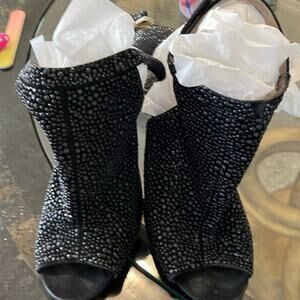 Shoes heels Jeffery Campbell heel strap open toe black size 8 pebbled, black jet stones all over -4” heel very sexy- & stunning on